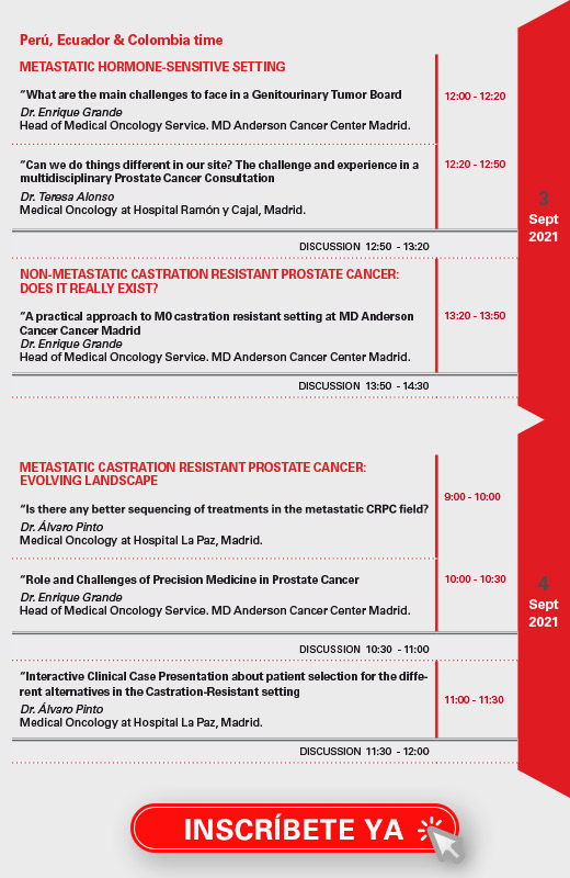 Lugar: Sala Videoconferencias – Hospital MD Anderson Cancer Center Madrid – Hospiten