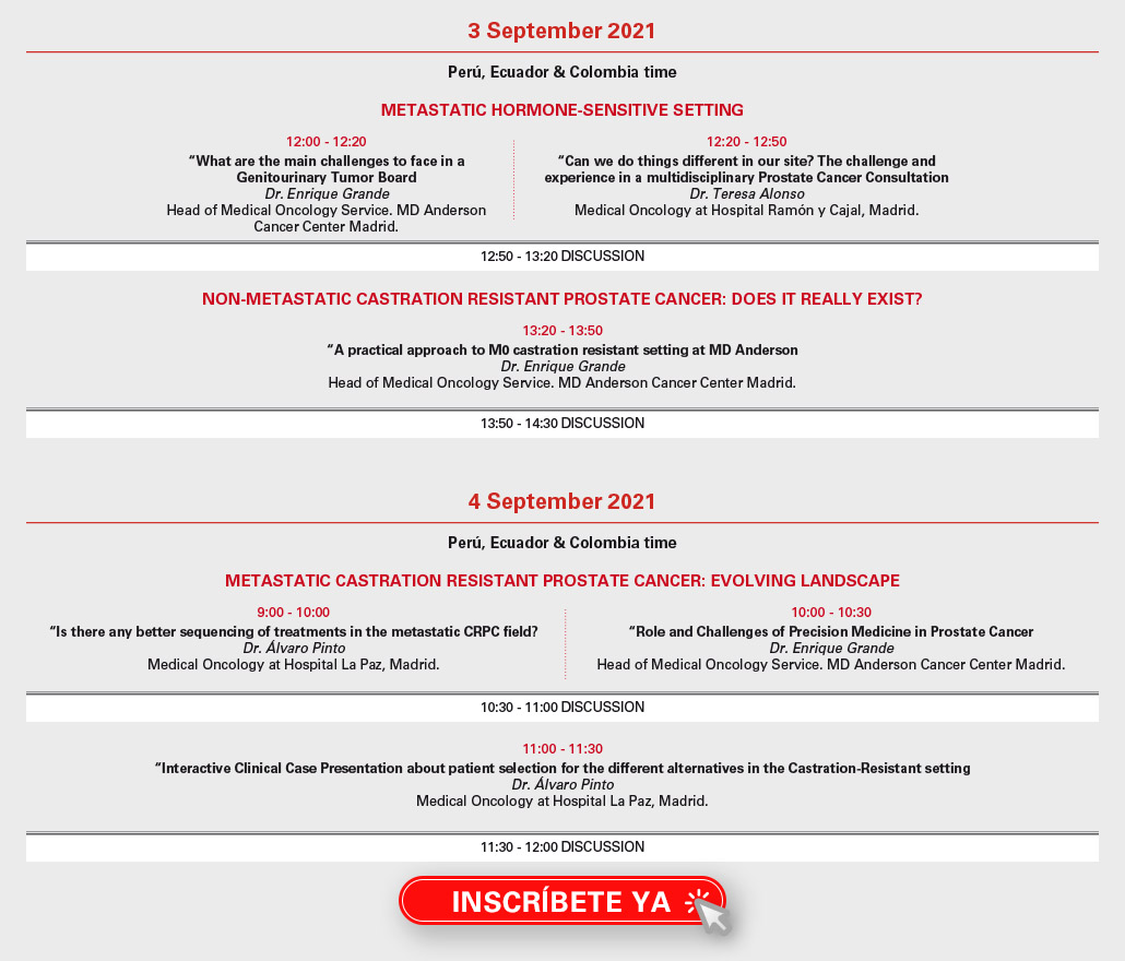 Lugar: Sala Videoconferencias – Hospital MD Anderson Cancer Center Madrid – Hospiten